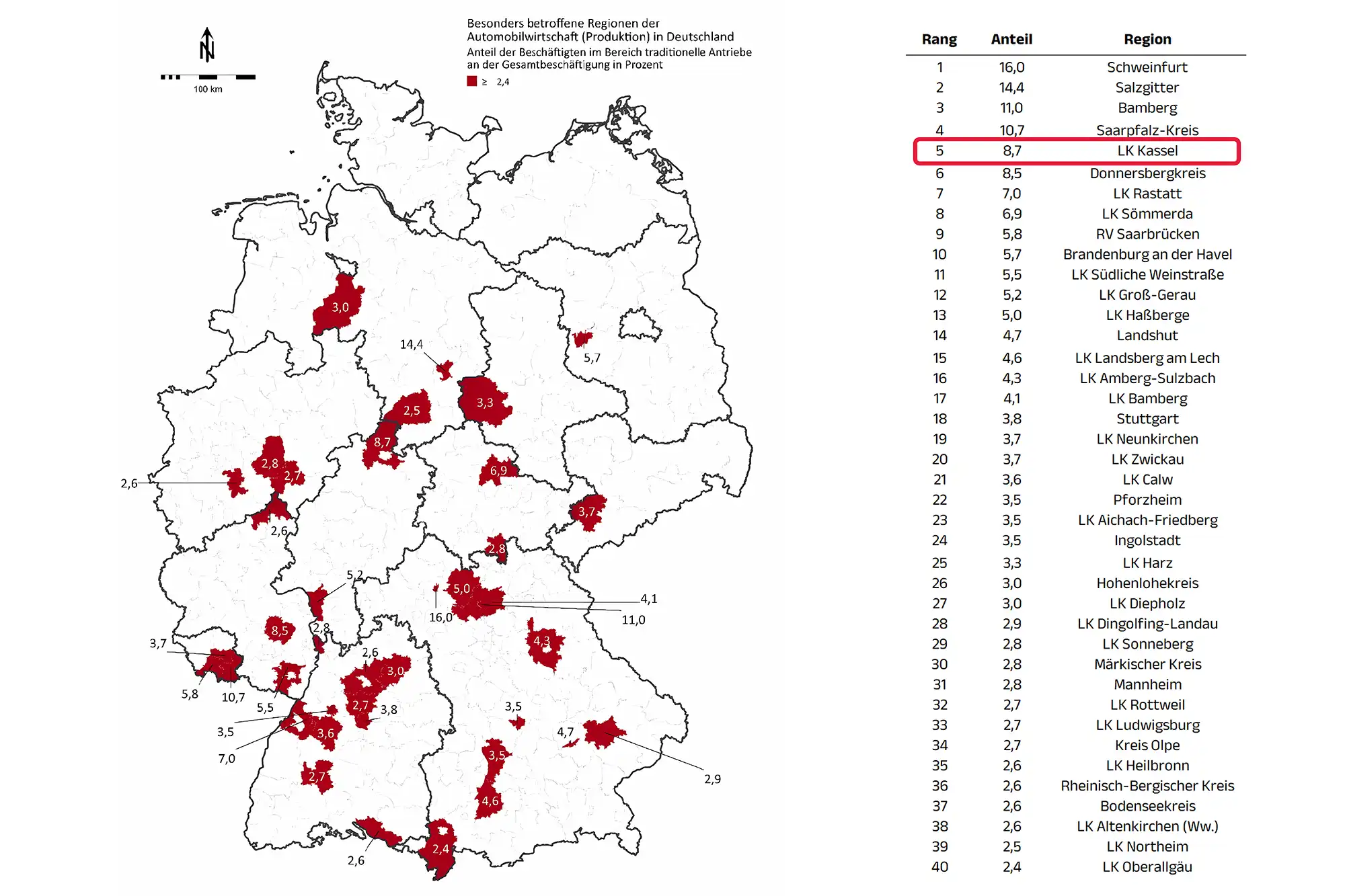 Against this backdrop, the German Federal Ministry for Economic Affairs and Energy (BMWi) launched a Study commissioned, which shows that the Kassel region is one of the five regions most affected by the automotive transition in Germany counts.